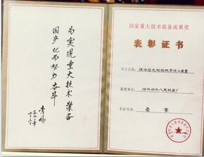 荣获李鹏颁发的表彰证书-Qualification honor-About-Zhuhai Xiangyu Machinery Technology Co., Ltd